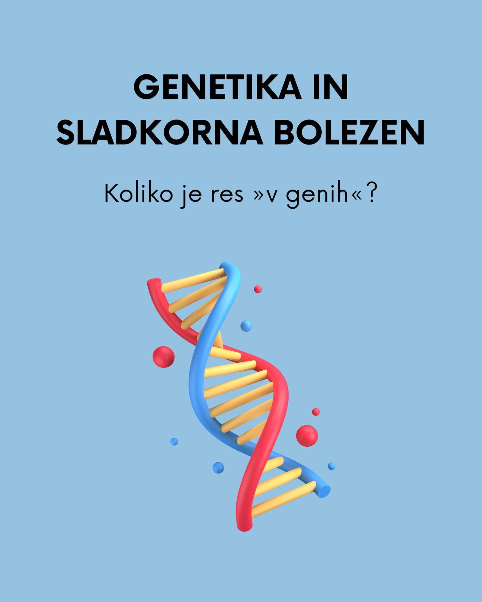 Pri tipu 2 genetika igra manjΕ‘o, a Ε‘e vedno pomembno vlogo β predvsem pa se izrazi skozi naΔin ΕΎivljenja (prehrana, telesna teΕΎa, stres, spanje).